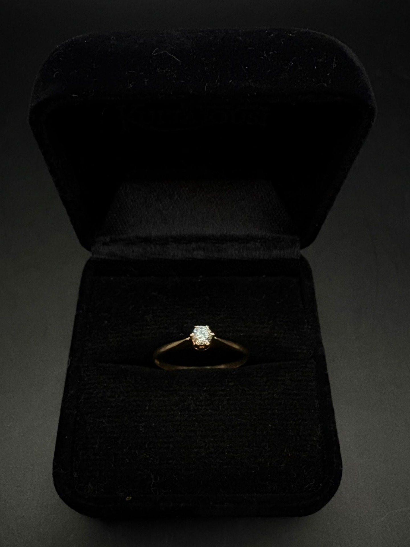 Kultainen kantasormus timantilla. Materiaali: 585 Kulta (14K) Koko: 17 Paino: 2,4g