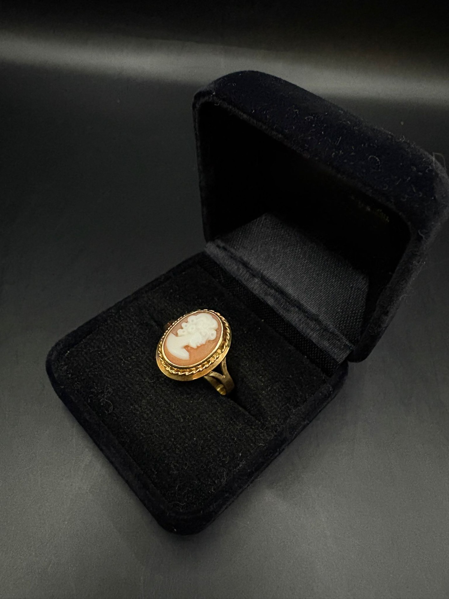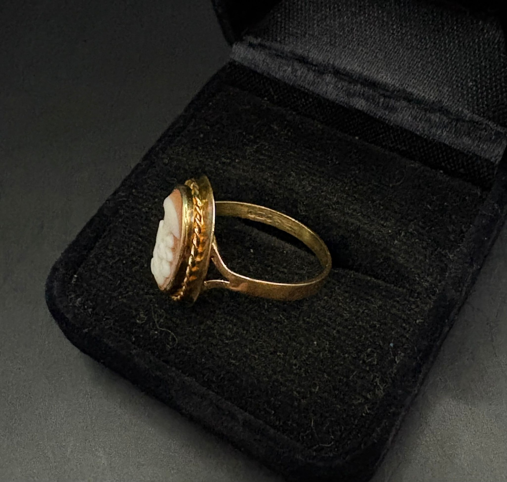 Erinomaisessa kunnossa oleva kultainen Camee-sormus. Ei nimikaiverruksia.