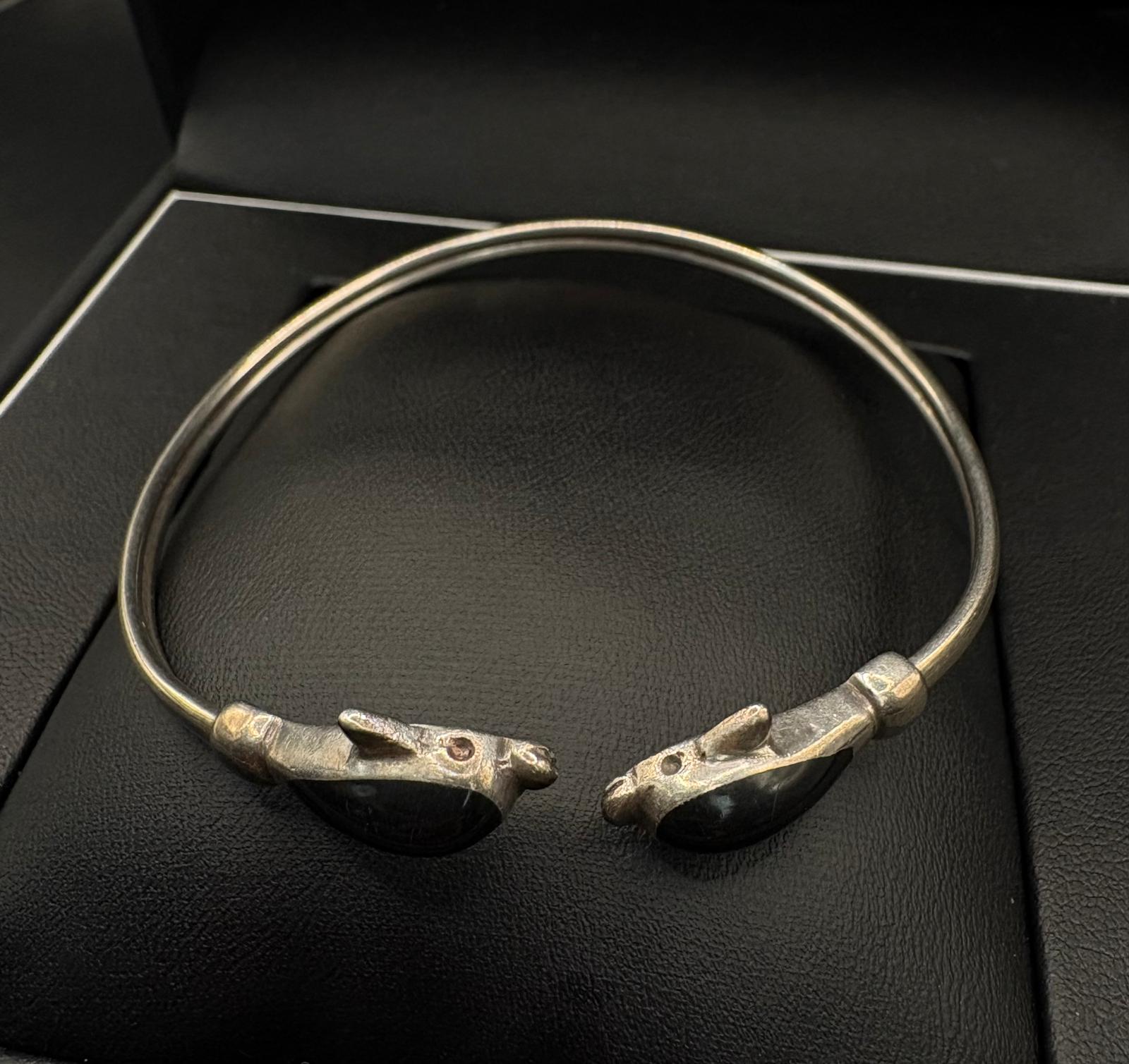 Hopeinen rannekoru delfiinikuvioilla.