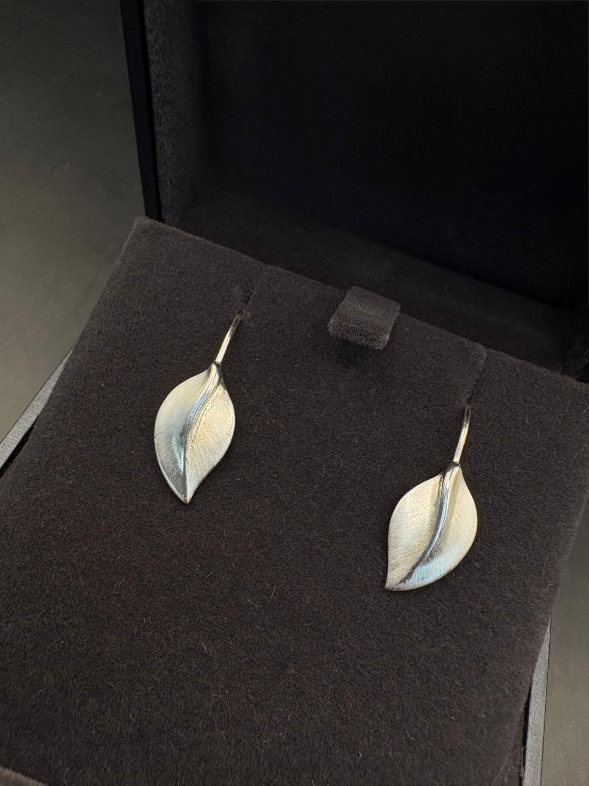 Hopeiset lehtikorvakorut koukkukiinnityksellä.