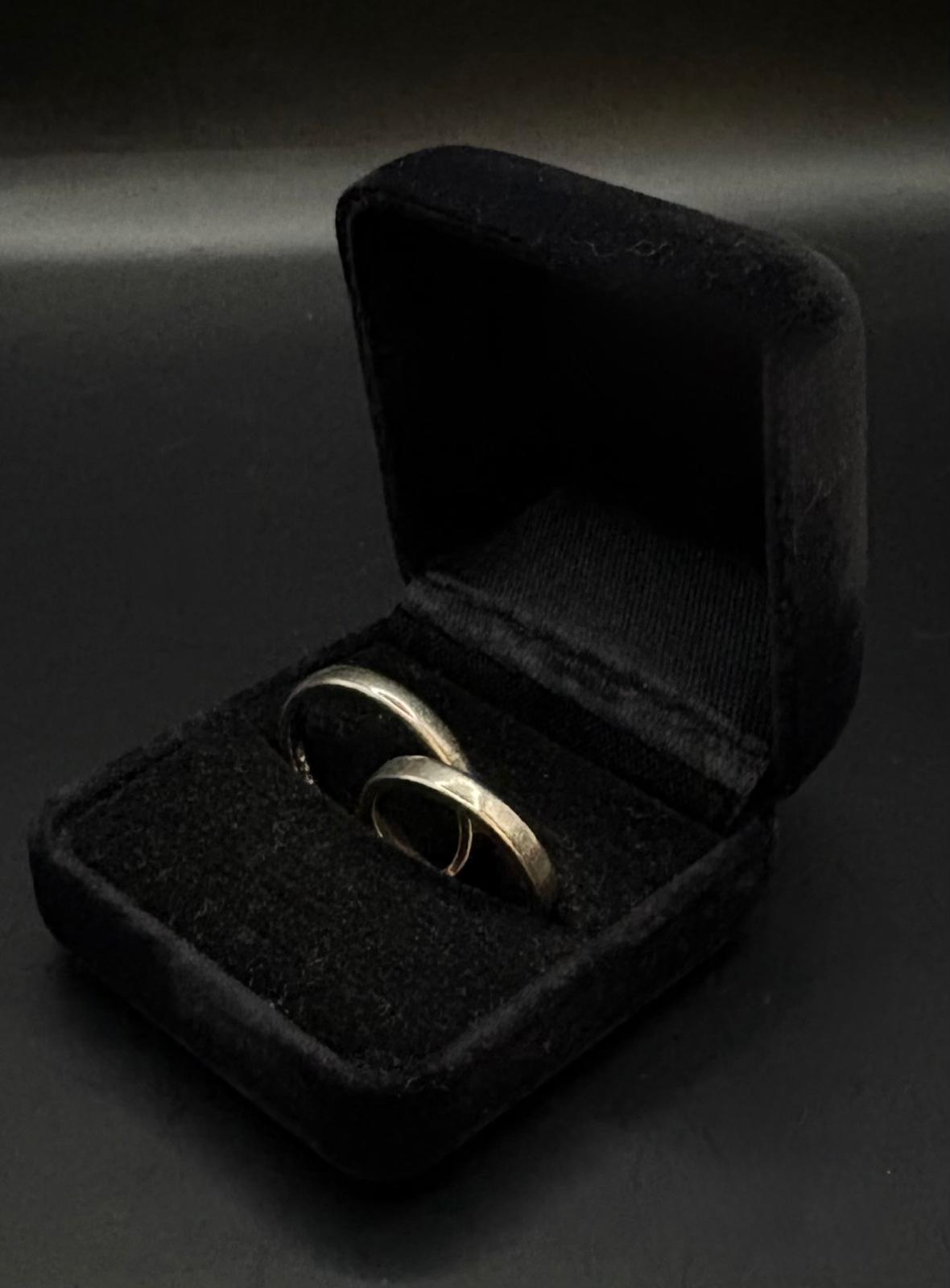 Valkokultainen kihlasormuspari. Ei kaiverruksia.