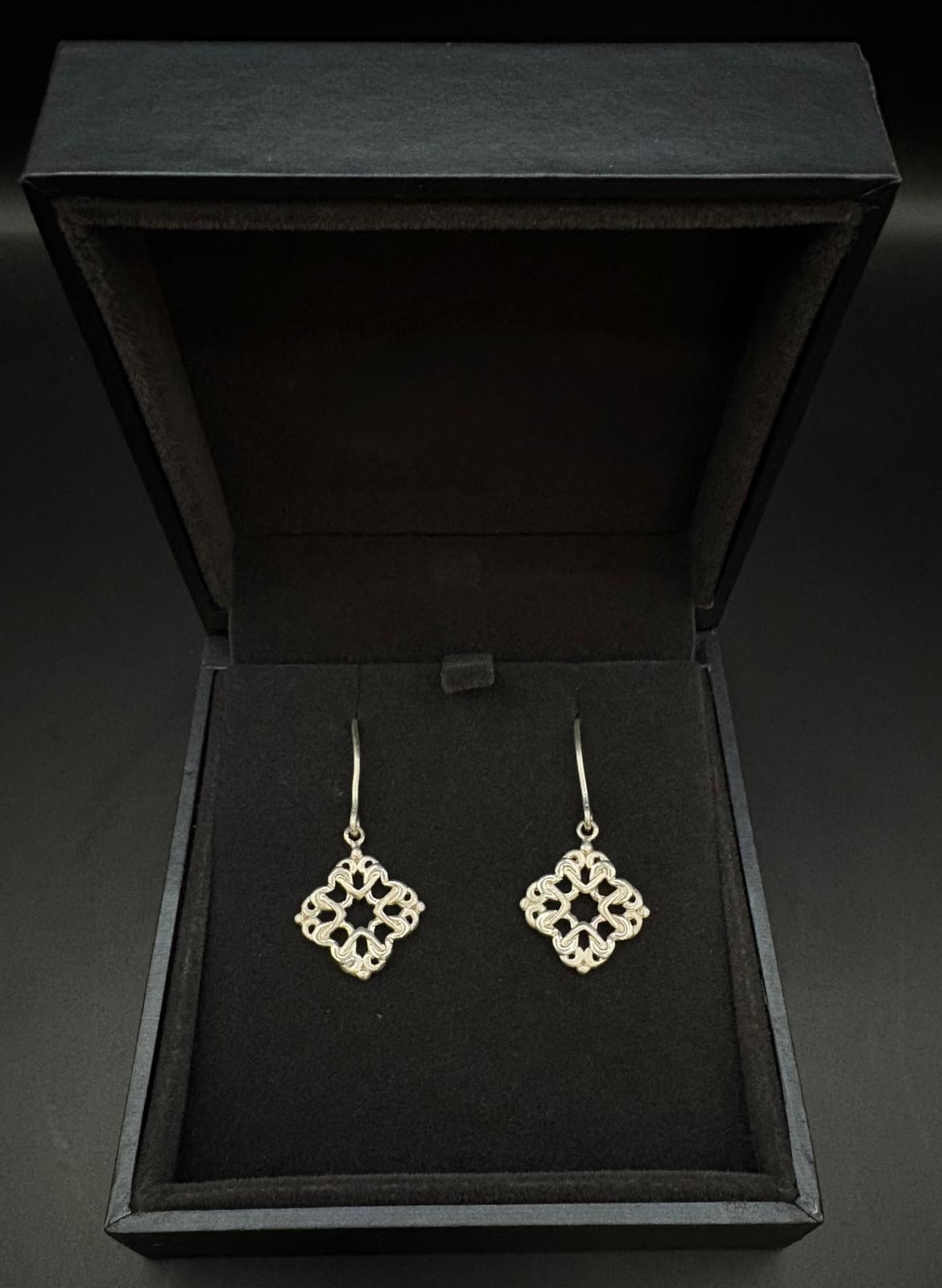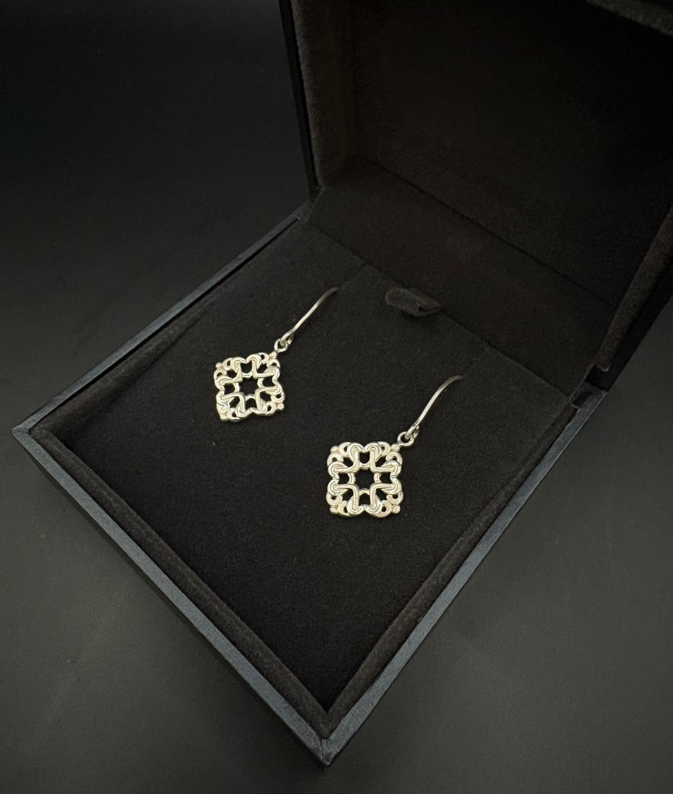 Roikkuvat hopeakorvakorut koukkukiinnityksellä.